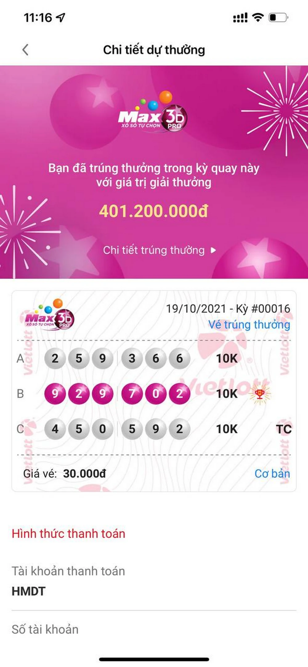Ngoài ra, phải nhắc tới anh Minh ở Trà Vinh đã nhận giải thưởng lên tới 466,2 triệu đồng ngay tại kỳ quay #00002 của Max 3D Pro. Dù chưa trúng giải Đặc biệt hay Phụ đặc biệt nhưng 15 giải Nhất + 15 giải Tư + 15 giải Sáu cũng đã mang về cho anh Minh số tiền gần nửa tỉ đồng như trên. Vé được mua chỉ với một bộ số 559 448 theo cách chơi Cơ bản, giá trị dự thưởng 150.000 đồng.