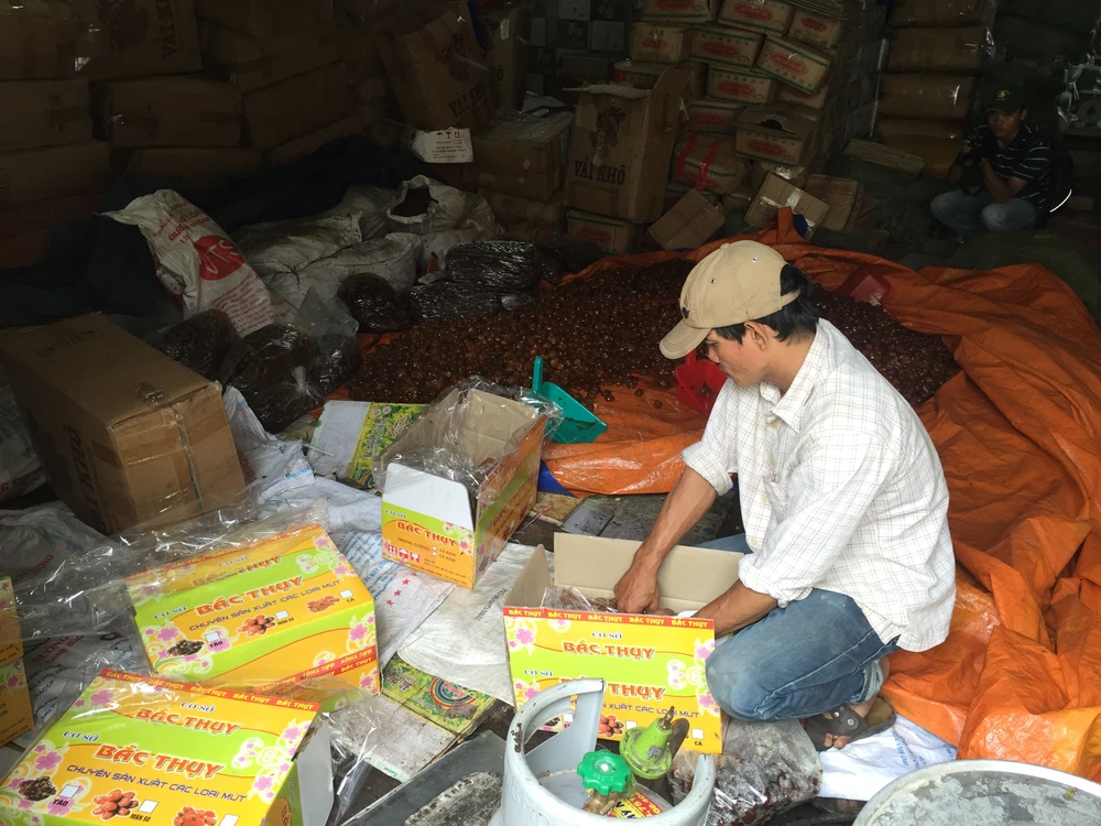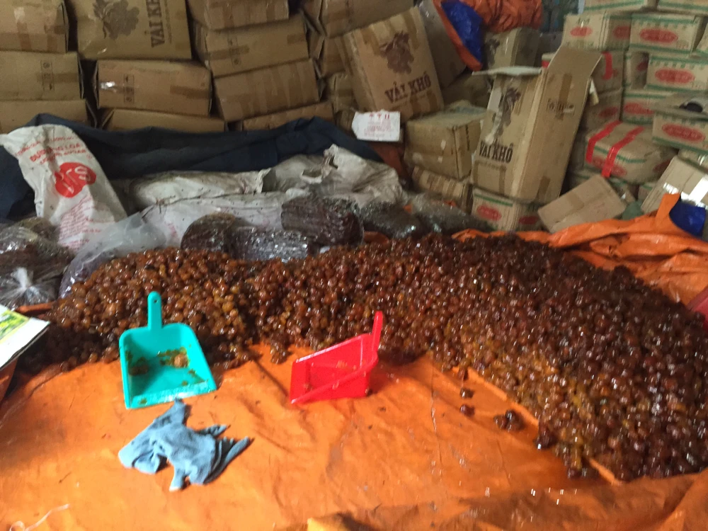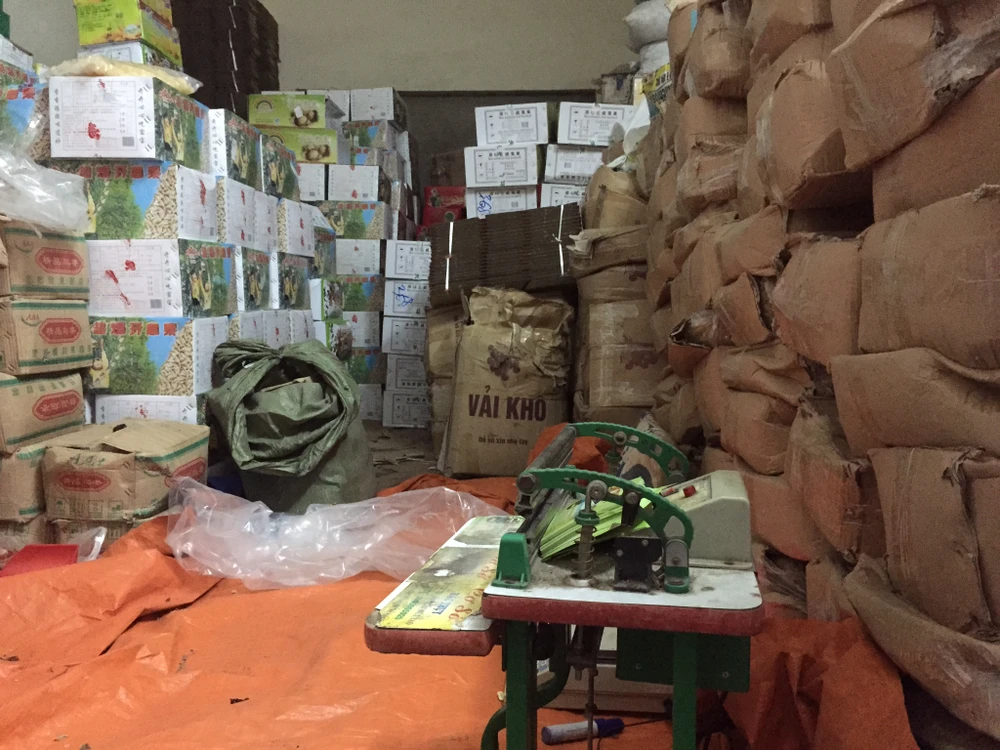 Tại đây, lực lượng chức năng phát hiện 4 tấn hạt dẻ do Trung Quốc sản xuất không có hóa đơn chứng từ. Và 6,4 tấn nho khô, mứt táo không rõ nguồn gốc xuất xứ, không ngày sản xuất, không hạn sử dụng, không hóa đơn chứng từ.