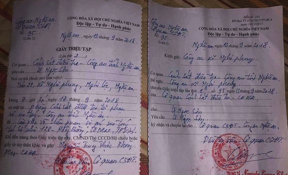 Nghi can Lê Ngọc Sơn bị công an triệu tập vì liên quan đến vụ án ma túy.