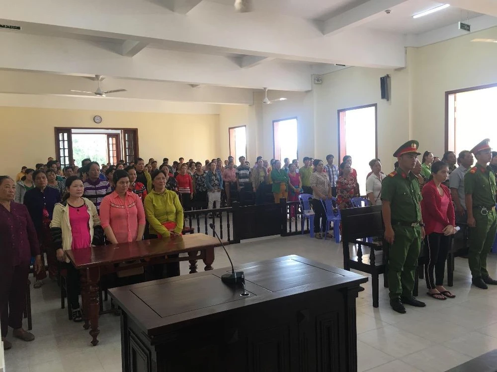 Vụ án có 139 người bị hại được tòa triệu tập đã đến ngồi kín hết phòng xử. Tòa dành gần hết buổi sáng chỉ để điểm danh, kiểm tra lý lịch và phổ biến quyền lợi, nghĩa vụ của bị cáo, các bị hại và người có quyền lợi, nghĩa vụ liên quan. Hầu hết những người này đều cùng ngụ chung một xã với bị cáo.