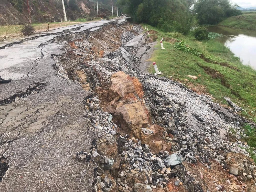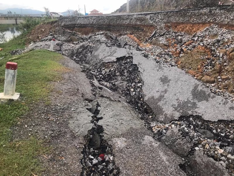 Ngày 30-9, đoạn từ Km 4+40 đến Km 4+140 (dài khoảng 100 m) xảy ra hiện tượng 2/3 đường bị tụt xuống với chiều sâu khoảng 2 m làm hư hỏng nghiêm trọng, gây ảnh hưởng đến việc tham gia giao thông.