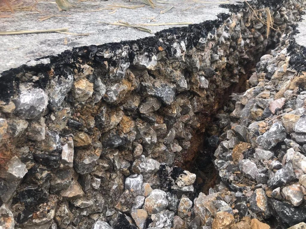 Mặt đường có những vết nứt khá lớn và rất sâu.