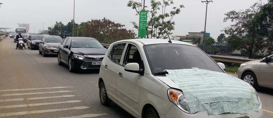 Một số người còn dán hàng chục cuống vé BOT qua cầu Bến Thủy lên trên xe, có người dán băng rôn lên đầu xe rồi cùng đi "diễu hành". Sự việc trên gây ách tắc xe ô tô chiều Nam-Bắc qua cầu Bến Thủy 1.