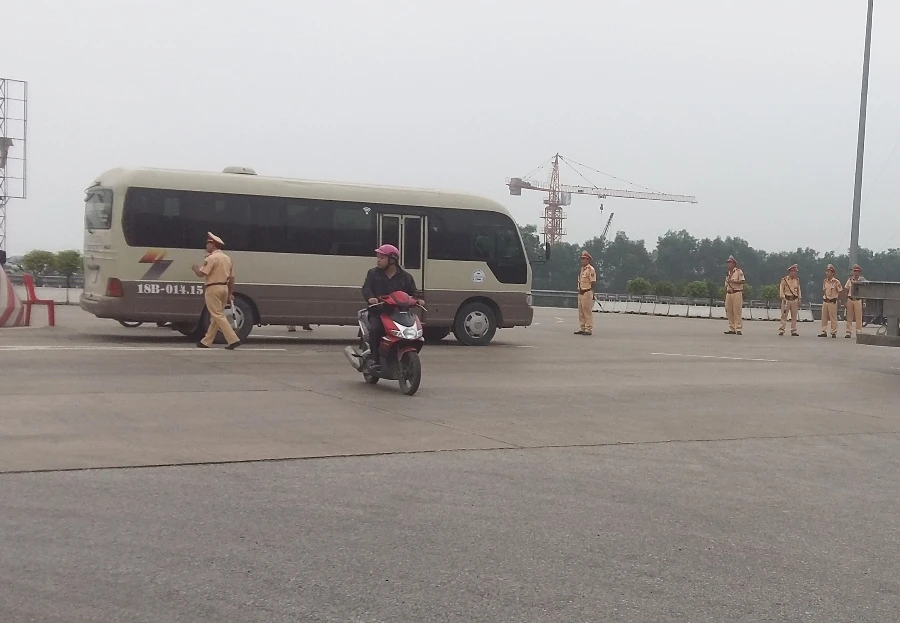 Sau khi qua Trạm thu phí Bến Thủy 2, nhiều người lại vừa lái vừa dừng xe trên đường tránh TP Vinh khiến lưu thông qua đoạn đường này rất khó khăn. Thượng tá Hoàng Duy Hà, Phó Trưởng Công an TP Vinh có mặt đầu cầu Bến Thủy 1 để chỉ đạo phân luồng trách ách tắc giao thồng, đảm bảo an ninh trật tự.