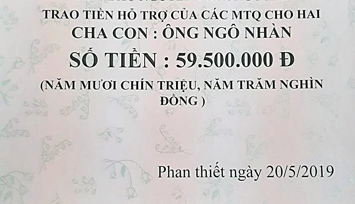 Ngoài số tiền vừa trao, sau khi PLO viết lại câu chuyện, có rất nhiều tổ chức cá nhân gởi về hoặc trực tiếp đến bệnh viện để trao cho cha con ông Nhàn gần 50 triệu đồng.