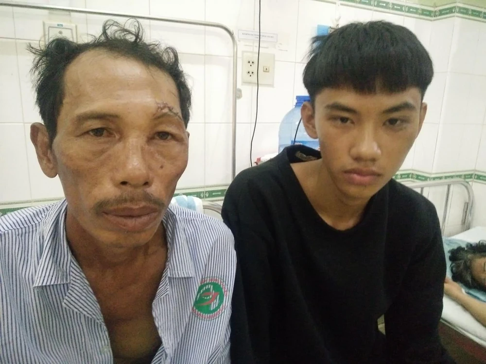 Hai cha con động viên nhau ôm miếng xốp cầu nguyện có tàu phát hiện cứu giúp. Ông Nhàn cho biết dù bị thương ở đầu rất nặng, choáng nhưng khi thấy con trai lạnh run, mặt tái mét, ông đã cố tìm kiếm xem có dây nhợ nào trôi gần đó để cột chặt cha con lại với nhau để nếu có chết thì hai cha con cùng chết.
