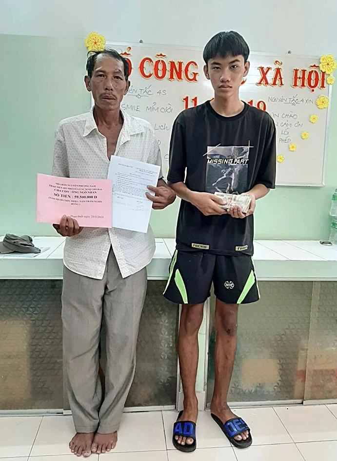 Cha con ông Nhàn gởi lời biết ơn đến những tấm lòng từ tâm khắp nơi đã đồng cảm giúp đỡ gia đình ông.
