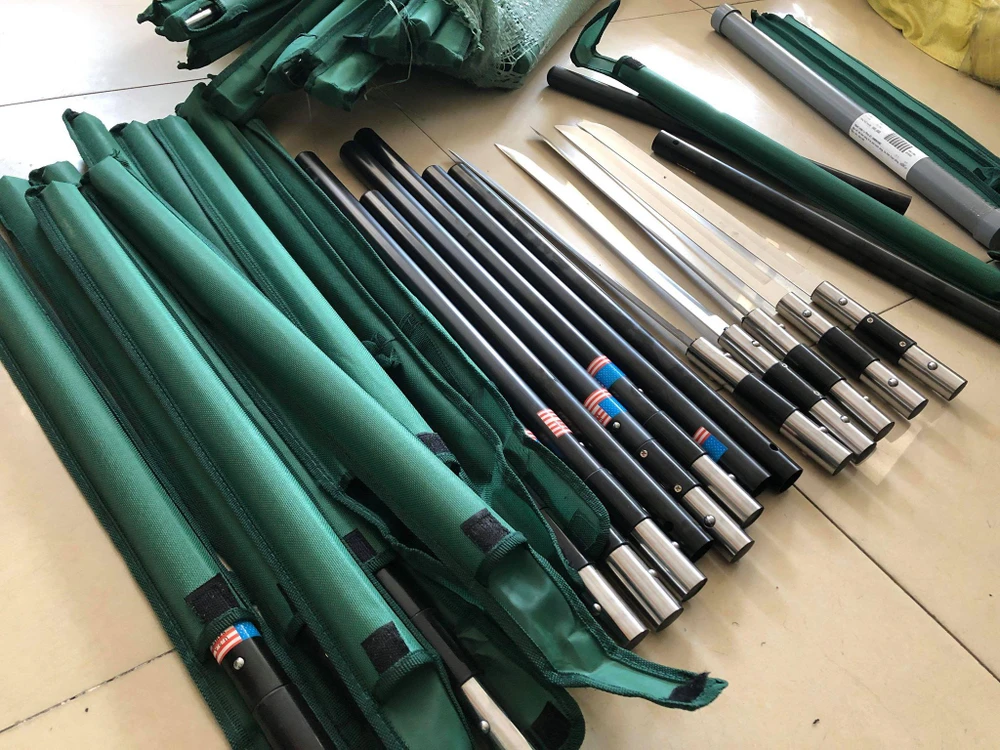 Trước đó, qua công tác nắm địa bàn, khuya 5-7, Công an quận 11 phối hợp với Công an phường 10 kiểm tra căn nhà cho thuê tại số 190/28-30-32 đường Xóm Đất, phường 10, phát hiện trong căn phòng số 102 có nhiều bao tải chứa 1.064 dao tự chế.