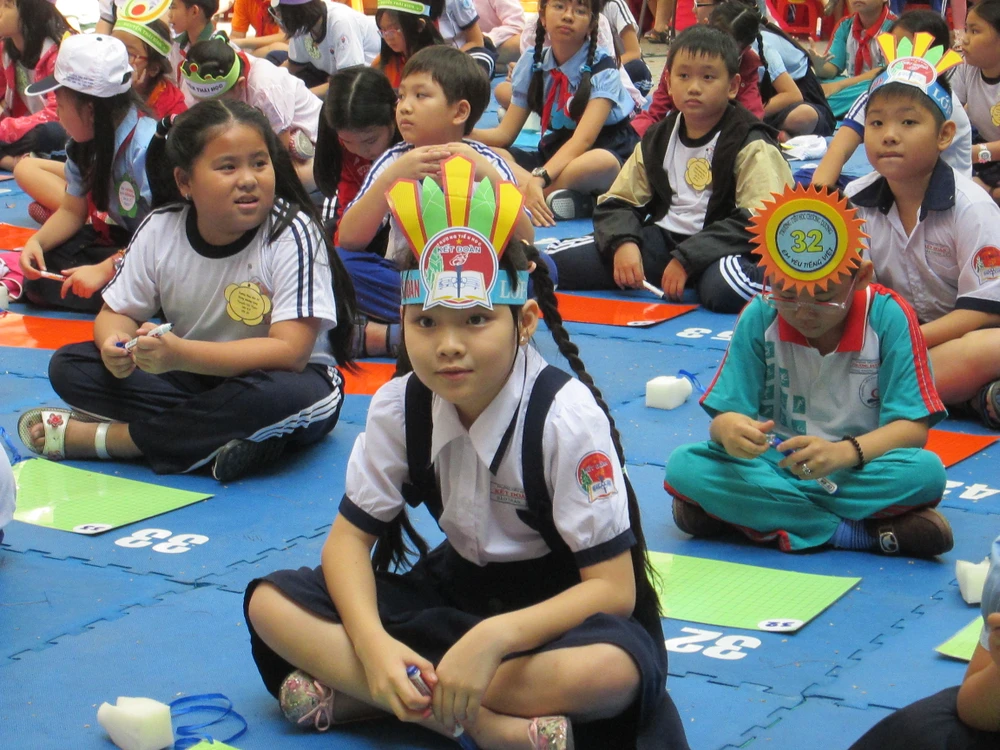 Các em học sinh thích thú với trò chơi đuổi hình bắt chữ”