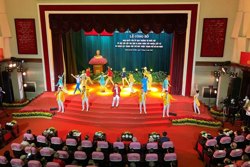Đúng 9 giờ sáng 31-12, tại trụ sở UBND quận 2, Thành ủy - UBND - Ủy ban MTTQ Việt Nam TP.HCM, đã tổ chức lễ công bố nghị quyết của Ủy ban Thường vụ Quốc hội về việc sắp xếp các đơn vị hành chính cấp huyện, xã và thành lập TP Thủ Đức thuộc TP.HCM.