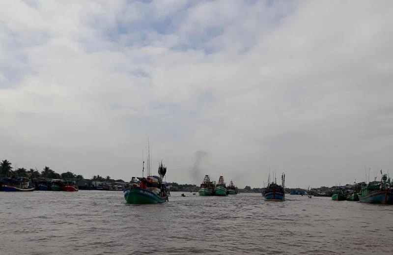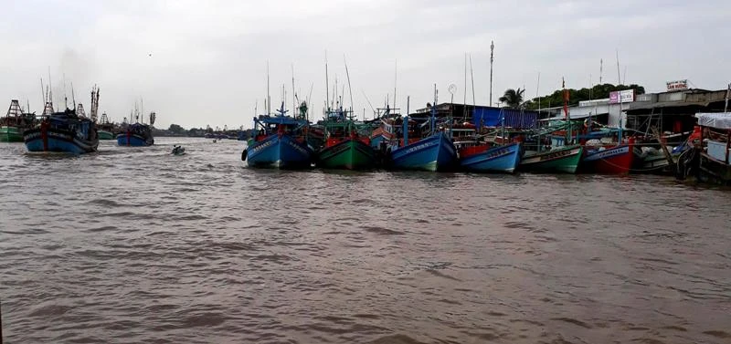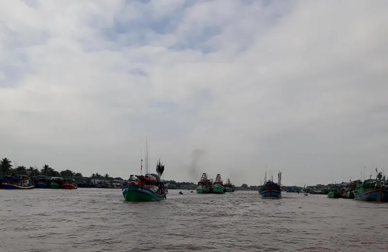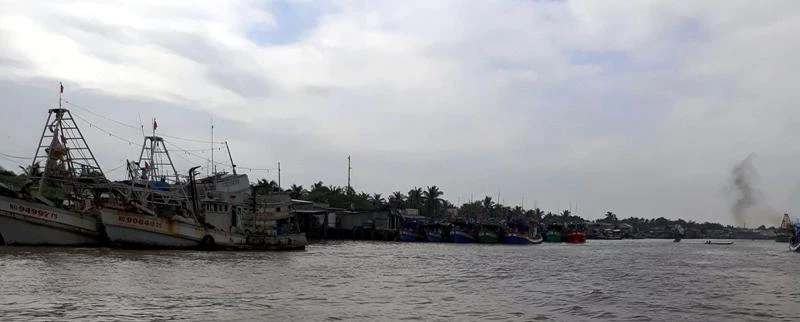 Tại khu neo đậu ở khu âu thuyền Ngọc Hiển trên sông Rạch Gốc có hơn 1.000 tàu các loại đã về neo đậu để trú tránh bão và các tàu neo đậu san sát kéo sài khoảng 5km.