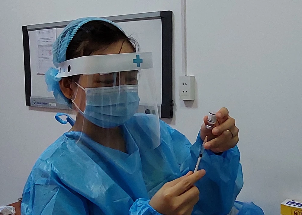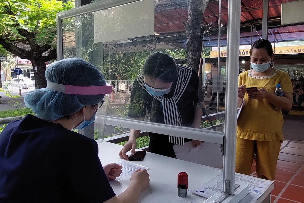 Sau khi khai báo xong, thai phụ được đưa vào khu vực riêng để khám sàng lọc, nếu đủ điều kiện thì di chuyển vào phòng tiêm.
