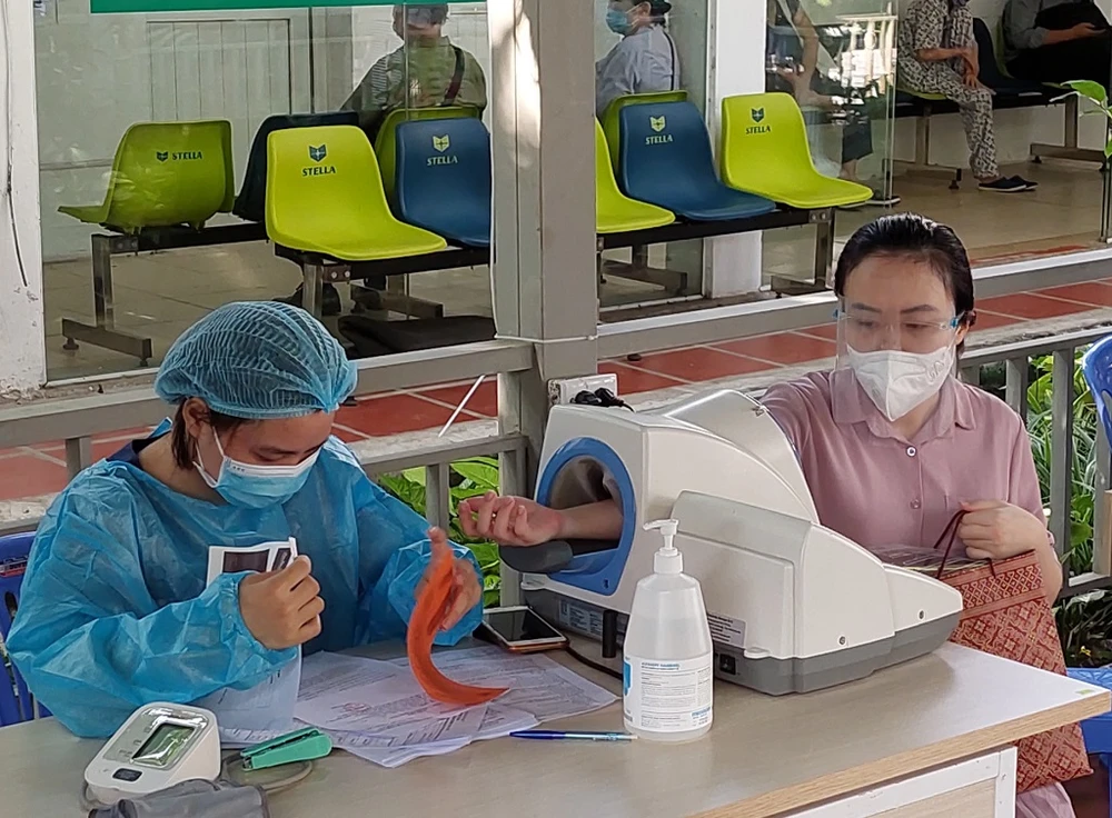 Họ được khám sàng lọc, kiểm tra các chỉ số sức khỏe để xác định có đủ điều kiện tiêm hay không. Ảnh: TP