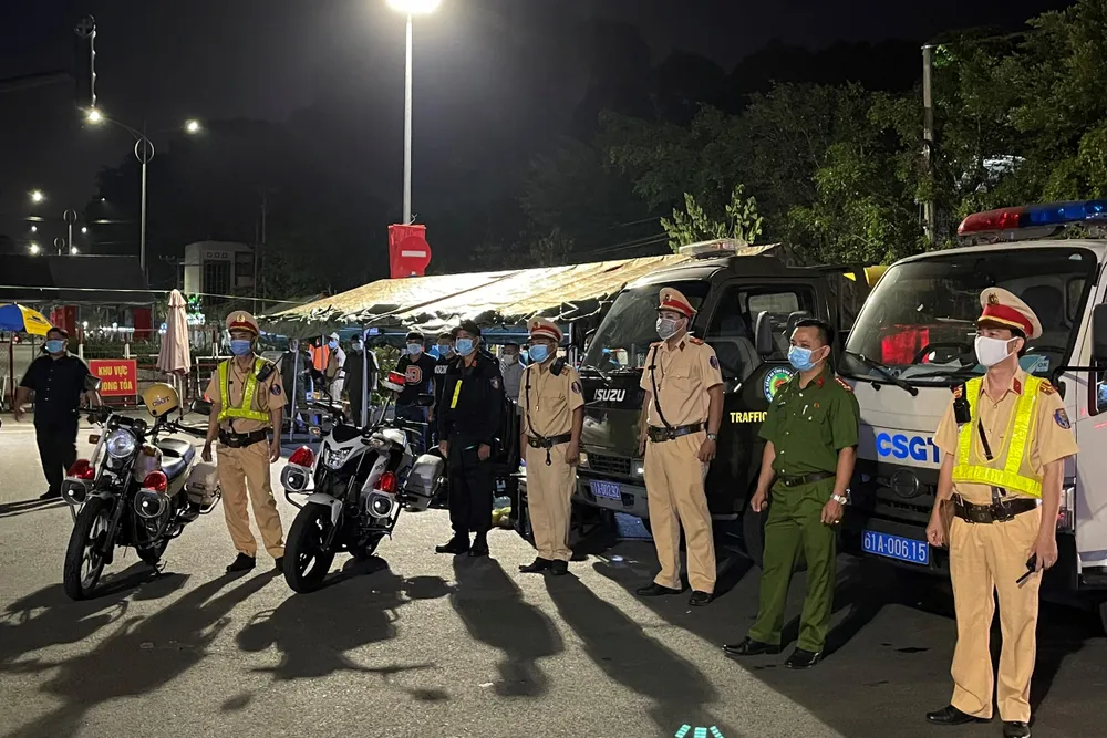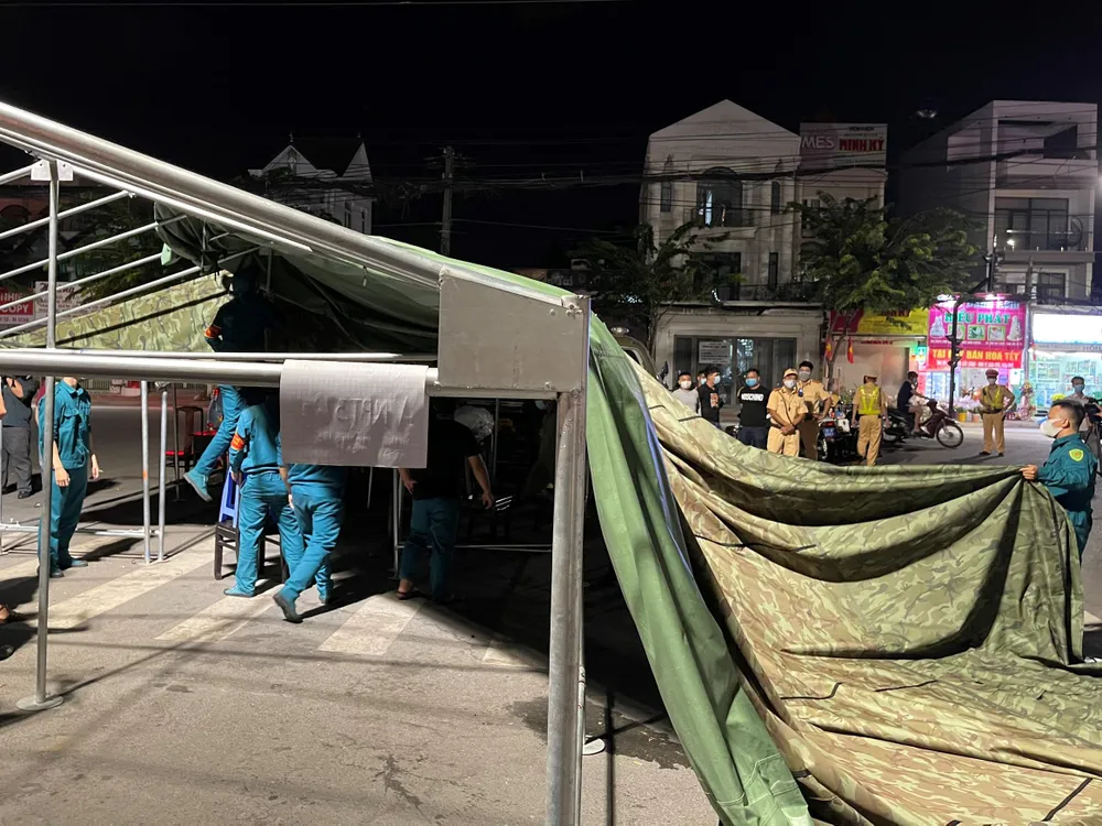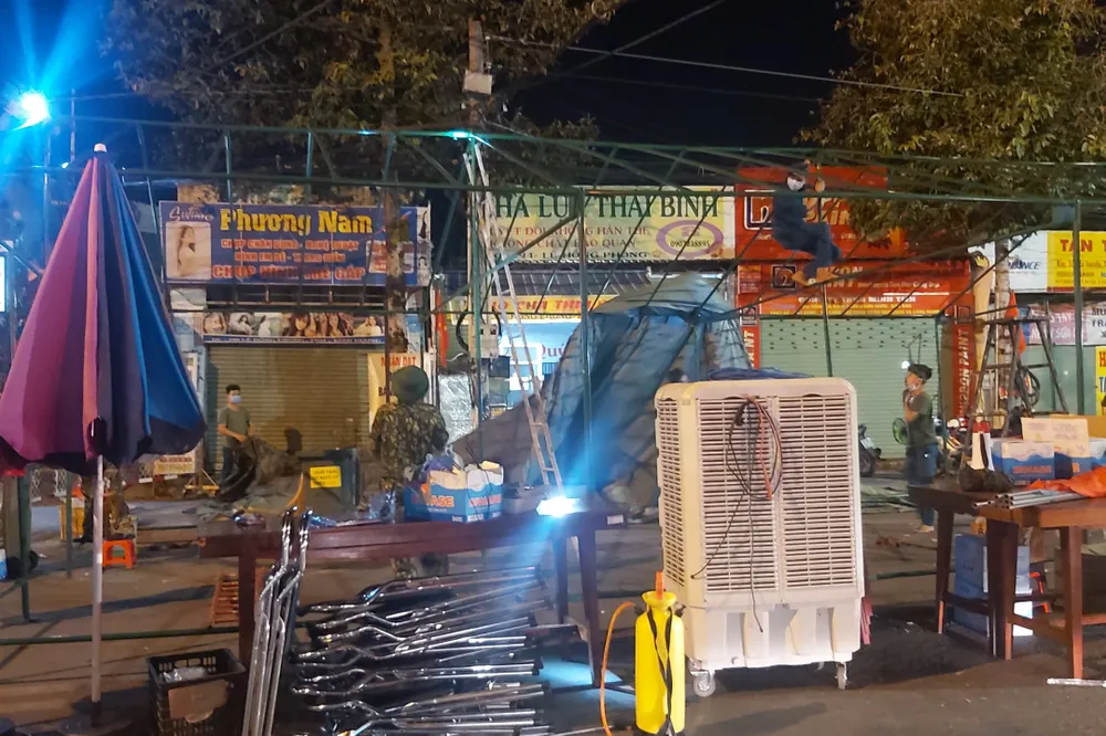 Đúng 23 giờ, lực lượng chức năng TP Thủ Dầu Một tháo dỡ lều trại tại các chốt phong tỏa. Ảnh: KD