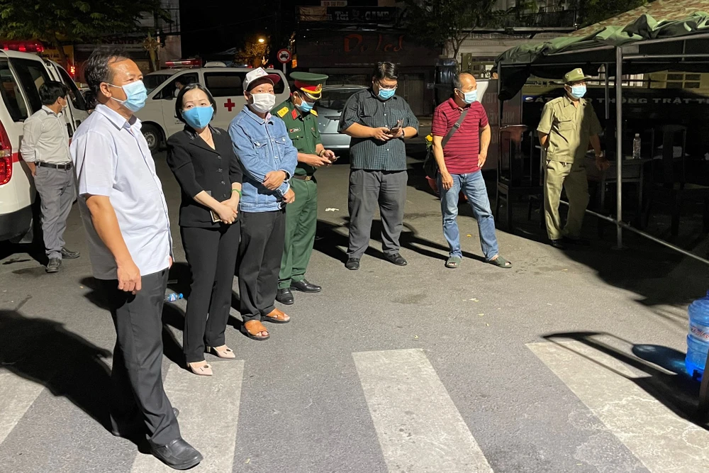 Lãnh đạo TP Thủ Dầu Một trực tiếp đến khu vực phong tỏa chỉ đạo các lực lượng dỡ bỏ phong tỏa. Ảnh: KD