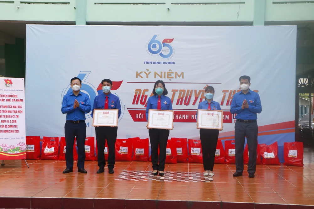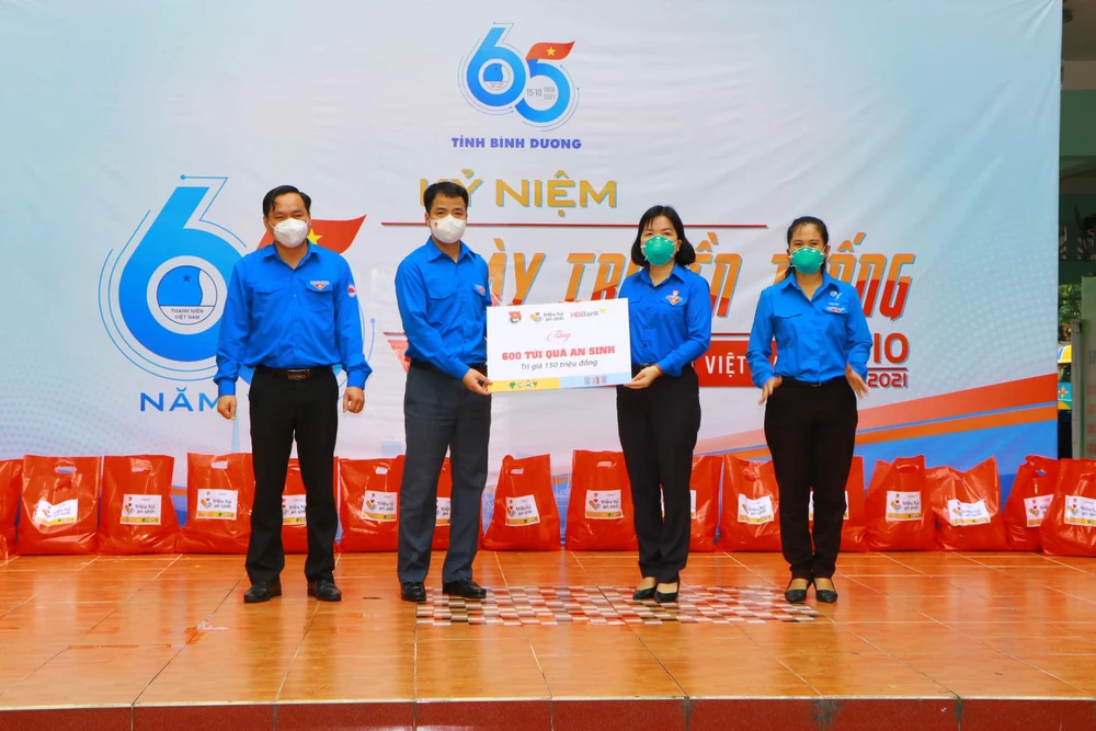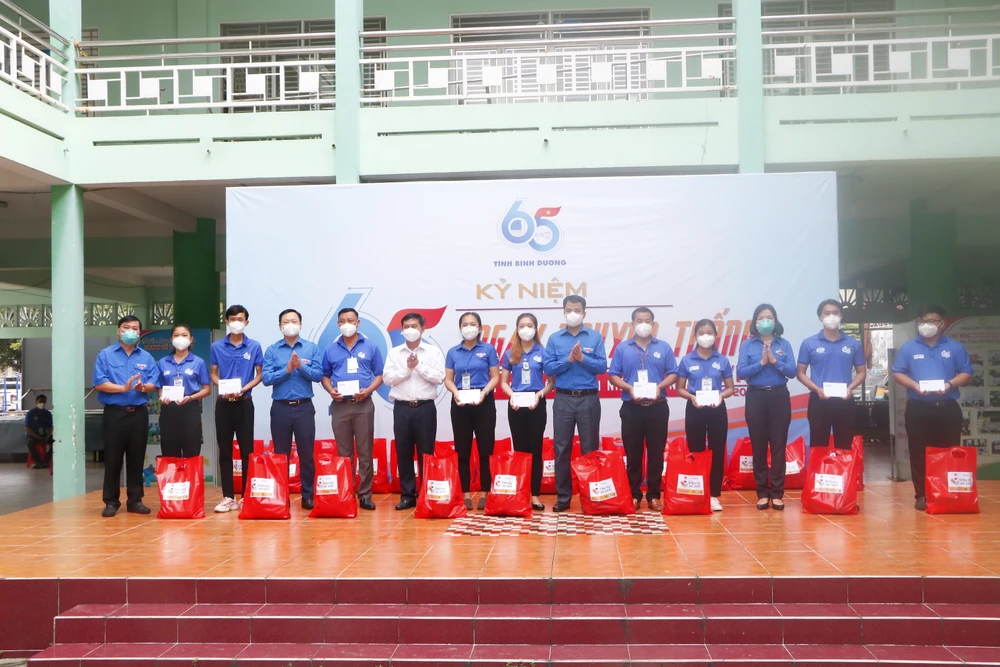 Ngày 24-9, Trung ương Đoàn TNCS Hồ Chí Minh phối hợp với Báo Thanh niên trao tặng 600 túi an sinh, 200 thùng sữa, 500 phần quà cho tình nguyện viên có hoàn cảnh khó khăn đã tham gia tích cực công tác phòng, chống dịch COVID-19 trên địa bàn tỉnh Bình Dương.