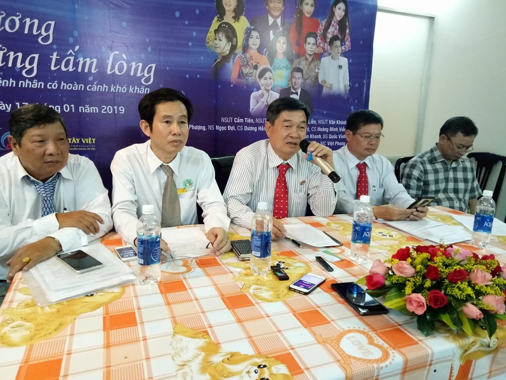Thiếu tướng Hồ Việt Lắm (thứ ba từ phải sang) bày tỏ mong mỏi trong chương trình đêm nhạc thiện nguyện. Ảnh: TRÚC PHƯƠNG