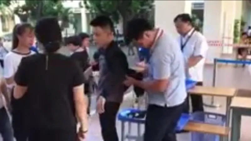 Kiểm tra an ninh trước khi thí sinh vào phòng thi. Ảnh: C.PHƯƠNG