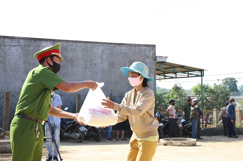 Ngày 22-4, tại xã Ea Hồ (huyện Krông Năng, Đắk Lắk), công an xã đã vận động quyên góp và trao tặng hàng trăm suất gạo cùng nhu yếu phẩm cho người dân có hoàn cảnh khó khăn ở các thôn, buôn trên địa bàn.