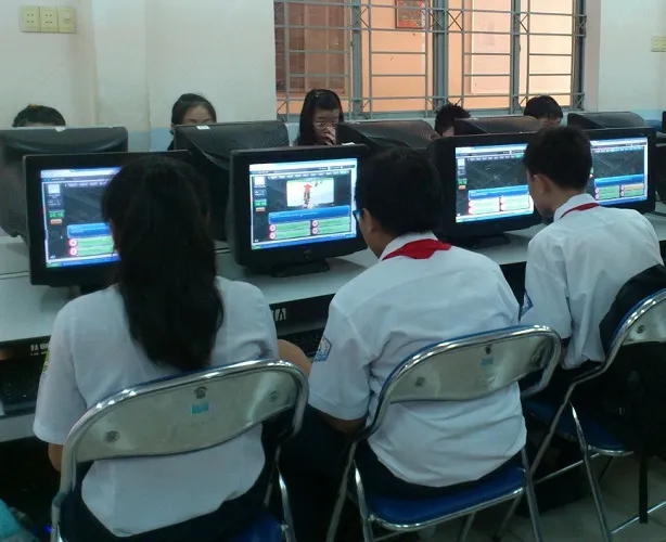 Học sinh đang làm bài thi trên inteernet. Ảnh: NT