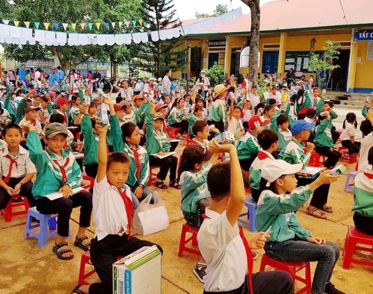 Cụ thể, nhãn hàng sữa Cô Gái Hà Lan (thuộc FrieslandCampina Việt Nam) đã tổ chức chương trình sinh hoạt ngoài trời và trao tặng hơn 16.000 ly sữa cho gần 10.000 em học sinh tại 21 trường Đèn Đom Đóm trên cả nước.