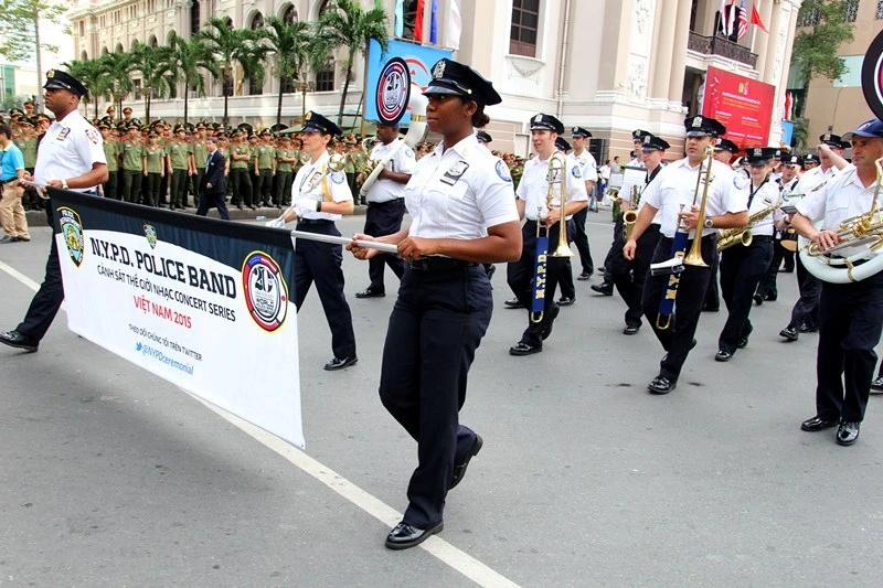 Clip hơn 200 cảnh sát thế giới tham gia nhạc hội đường phố.