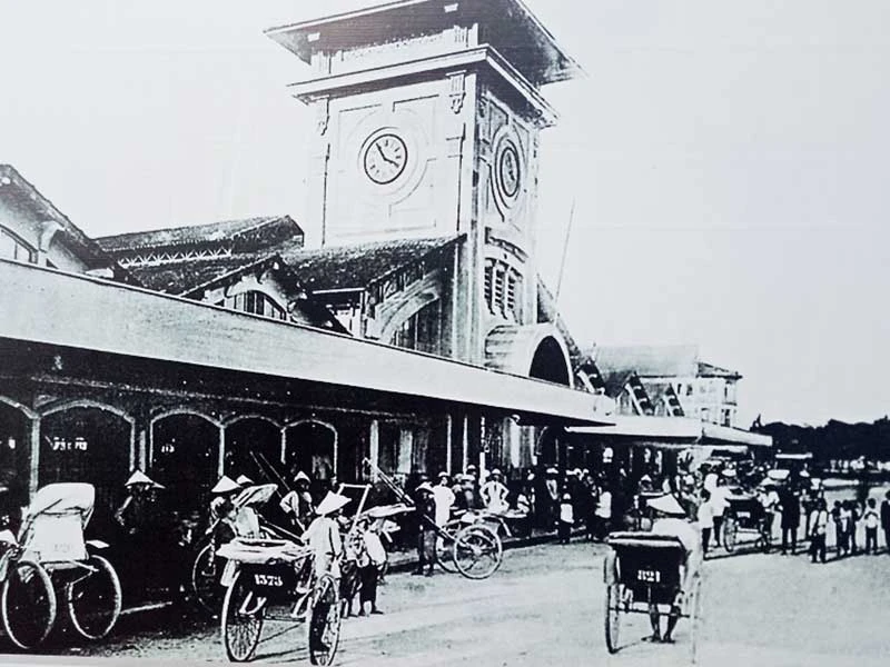 Hình ảnh chợ Bến Thành năm 1914 được trưng bày tại triển lãm. Ảnh tư liệu