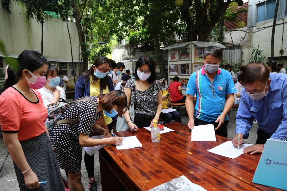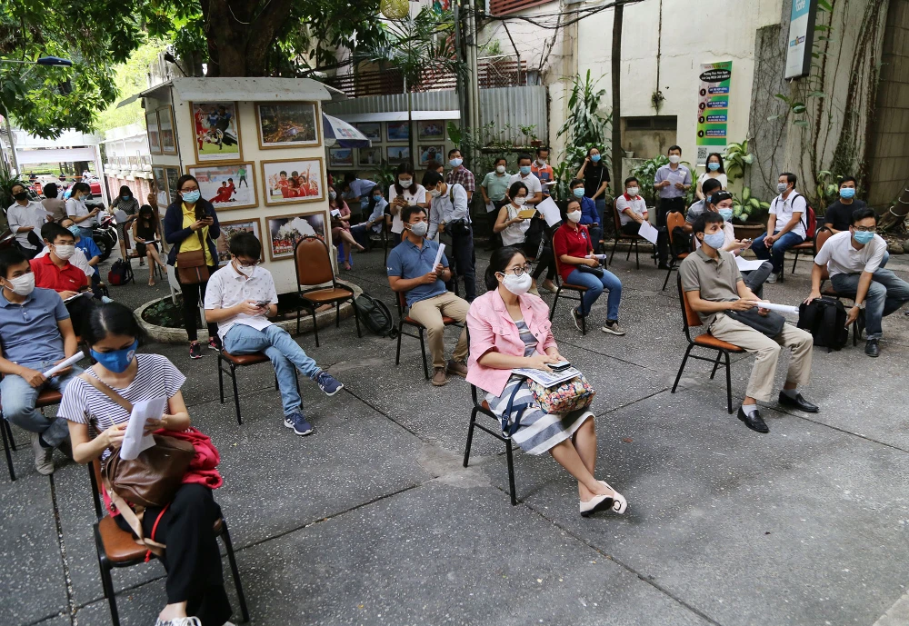 Từ 7 giờ 30 sáng, các nhà báo thuộc các cơ quan báo đài tại TP.HCM có mặt ở trụ sở Hội nhà báo TP để chuẩn bị tiêm vaccine phòng COVID-19.