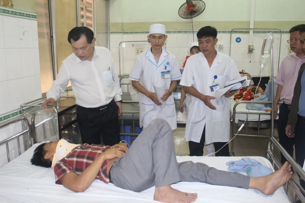 Ông Nguyễn Ngọc Hai, Chủ tịch UBND tỉnh Bình Thuận (bìa trái) thăm hỏi các nạn nhân bị thương trong vụ TNGT thảm khốc. Ảnh: BPN