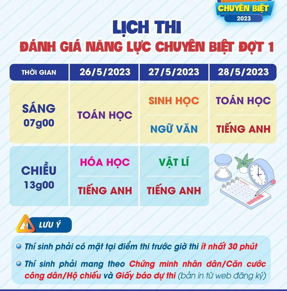 Theo đó, buổi sáng các em dự thi môn Toán với 90 phút, chiều là Hóa học cũng trong 90 phút và tiếng Anh với 180 phút.