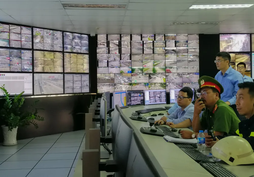 Ban chỉ huy quan sát vụ việc qua màn hình