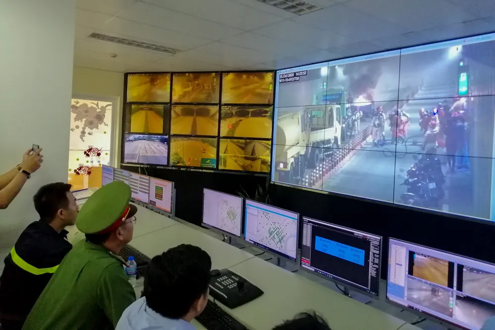 Tại trung tâm quản lý đường hầm sông Sài Gòn, Ban chỉ huy phát tín hiệu tại hầm, huy động lực lượng tại chỗ đến hiện trường.