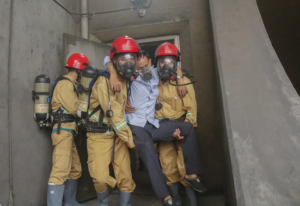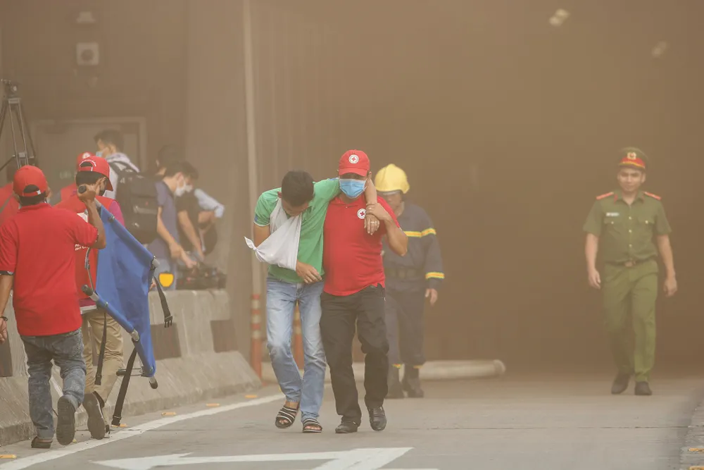 Sau 20 phút, hàng chục xe chuyên dụng và lực lượng chữa cháy đã nhanh chóng tiếp cận hiện trường, đưa các nạn nhân rời khỏi nơi nguy hiểm.