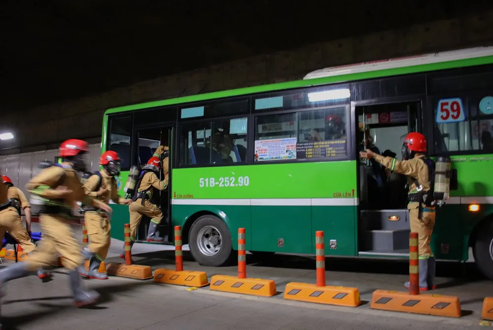 Chiều 25-10, Trung tâm quản lý điều hành giao thông đô thị (trung tâm quản lý đường hầm) phối hợp cùng phòng cảnh sát Phòng cháy chữa cháy (PCCC), cứu nạn, cứu hộ Công an TP. HCM đã tổ chức diễn tập PCCC tại đường hầm sông Sài Gòn.