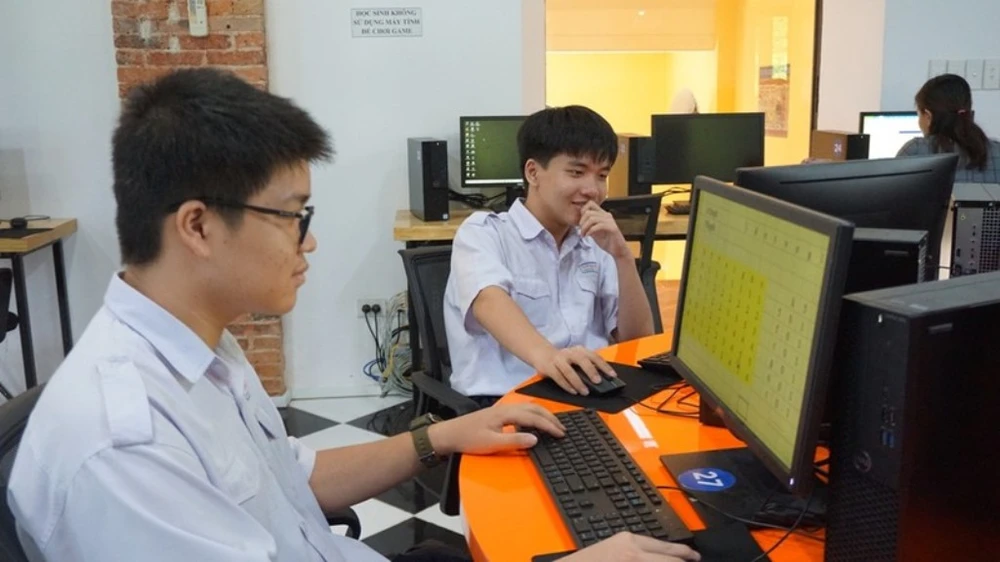 Học sinh Trường THPT chuyên Trần Đại Nghĩa tra cứu tài liệu tại thư viện của trường. Ảnh: NGUYỄN QUYÊN