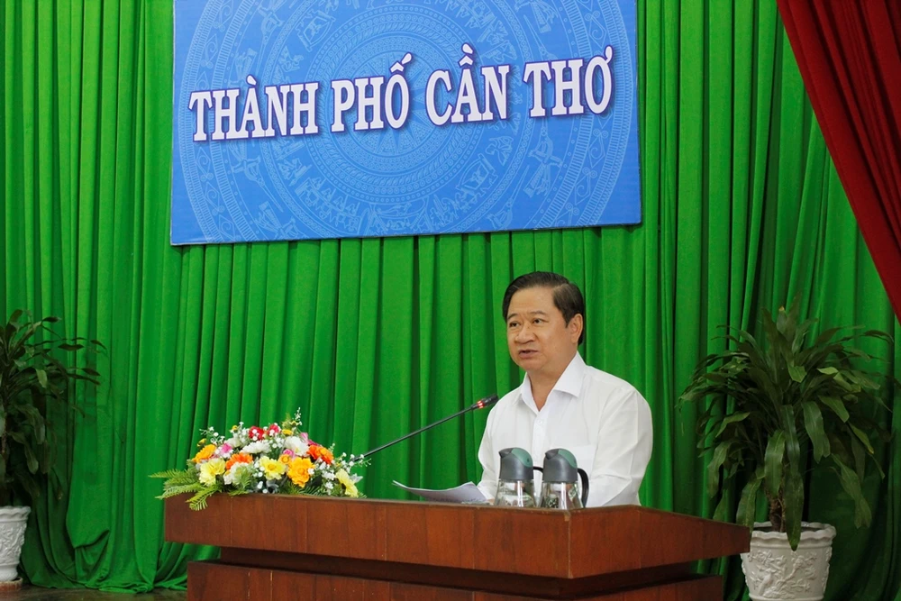 Chủ tịch UBND TP Cần Thơ Trần Việt Trường phát biểu chỉ đạo tại cuộc họp thường kỳ tháng 12. Ảnh: NHẪN NAM