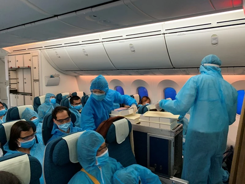 Chuyến bay của Vietnam Airlines đưa công dân, người lao động Việt Nam về nước. Ảnh: VNA
