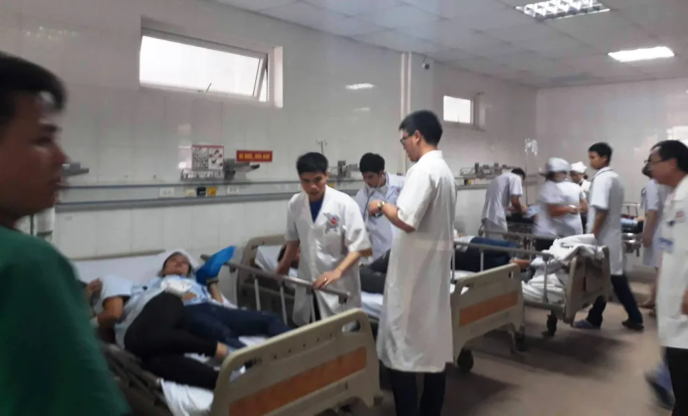 Khẩn trương đưa công nhân vào phòng cấp cứu của bệnh viện.