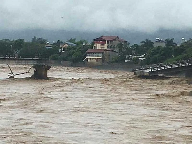 Ở Yên Bái, khoảng 13 giờ ngày 11-10, cây cầu Thia nối giữa phường Cầu Thia, thị xã Nghĩa Lộ và xã Phù Nham, huyện Văn Chấn đã bị lũ cuốn trôi.