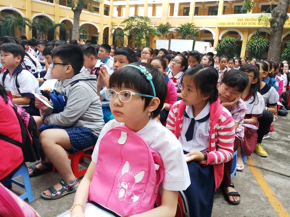 Các thí sinh tham dự vào kỳ thi vào lớp 6 chuyên Trần Đại Nghĩa.