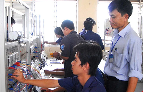 Thực tập nghề cơ khí tại Trường CĐ An Giang. Ảnh: Tam Anh