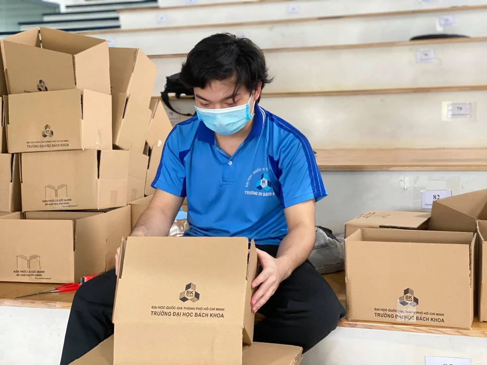 Đặc biệt, những hộp quà được cán bộ và các anh chị sinh viên gói ghém cẩn thận được in dòng chữ: "Kiến thức là sức mạnh để vượt mọi khó khăn - From HCMUT with love". Thông điệp như một lời động viên, khích lệ tiếp thêm động lực để các em yên tâm học tập trong điều kiện chưa thể triển khai học tập trung.