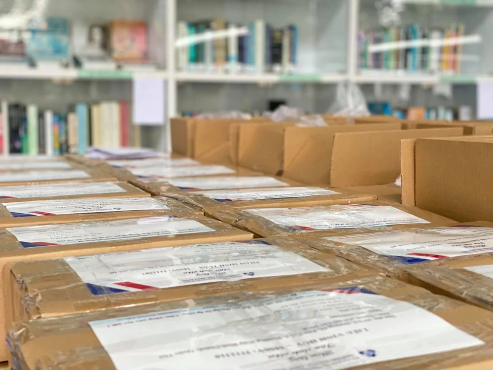 Hơn 5.000 bộ sách giáo trình được đóng gói cẩn thận gửi tặng đến từng sinh viên.