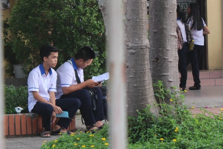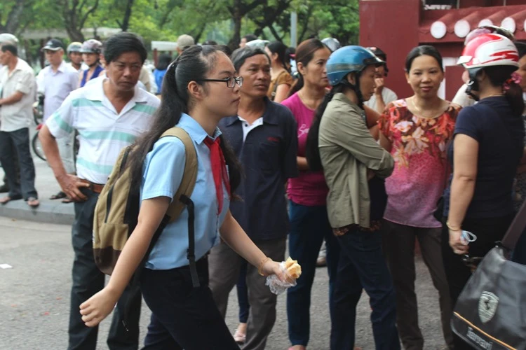 Chị Lê Thị Năm (phường An Cựu) đứng đợi con ngoài cổng trường nói: “Cháu thi vào trường Hai Bà Trưng nên tôi rất lo lắng, mong là cháu thi suôn sẻ”. cùng với tâm trạng của chị Năm, nhiều phụ huynh khác cũng đứng trước cổng trường lo lắng đợi con.