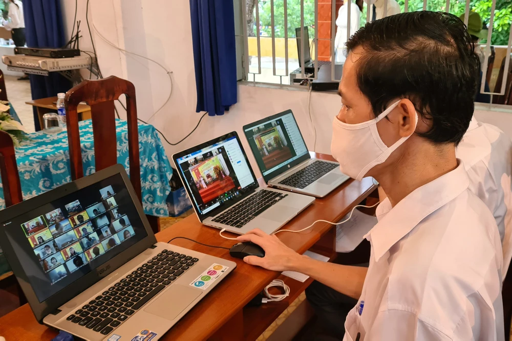 Song song đó, tại gần 730 điểm trường trên địa bàn tỉnh cũng tổ chức khai giảng trực tuyến.