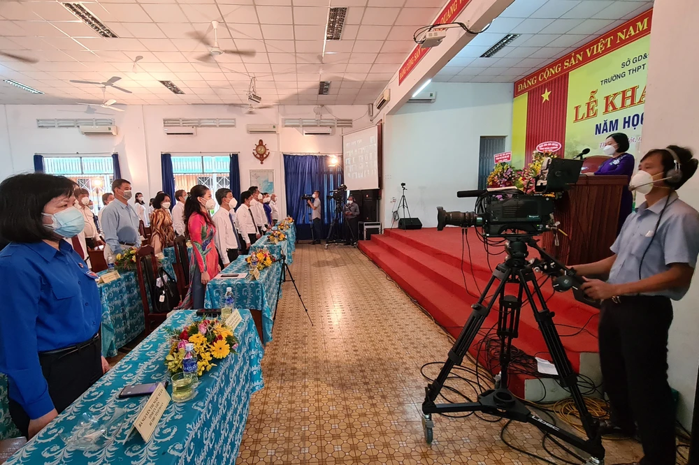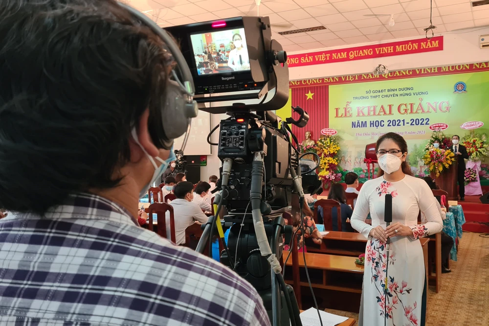 Lễ khai giảng được Đài truyền hình Bình Dương truyền hình trực tiếp. Ảnh: LÊ ÁNH