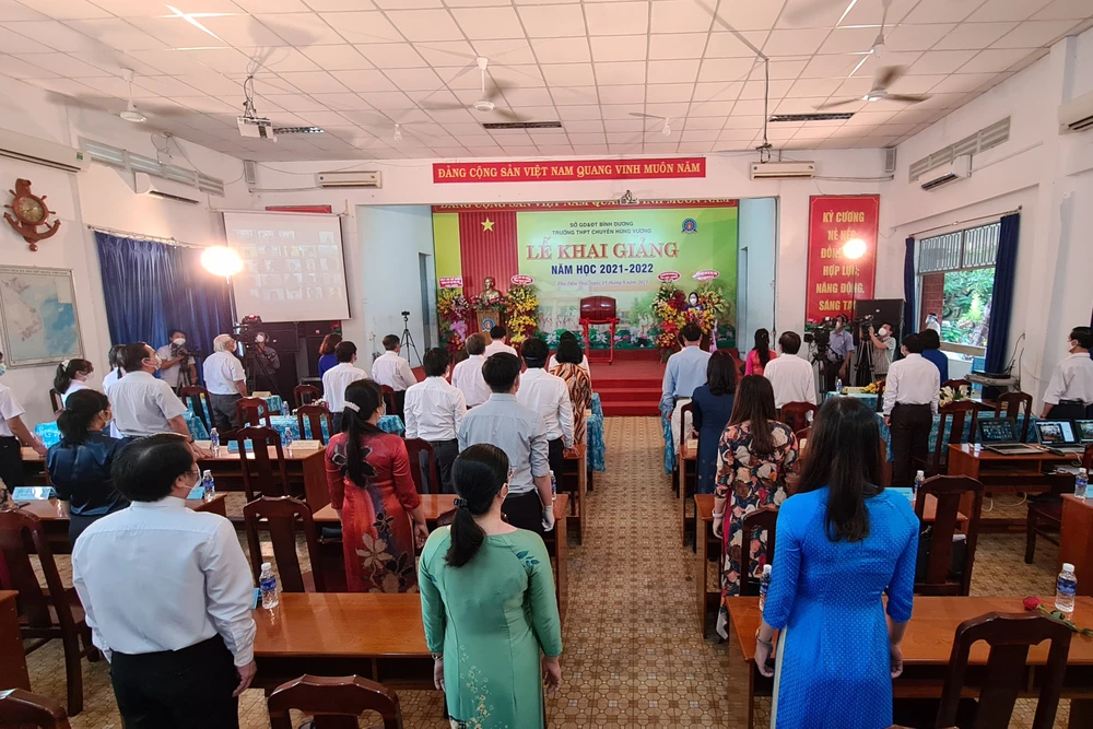 Sáng 15-9, tại trường THPT chuyên Hùng Vương (TP Thủ Dầu Một, Bình Dương), Sở GD&ĐT tỉnh Bình Dương đã tổ chức lễ khai giảng năm học mới 2021-2022.
