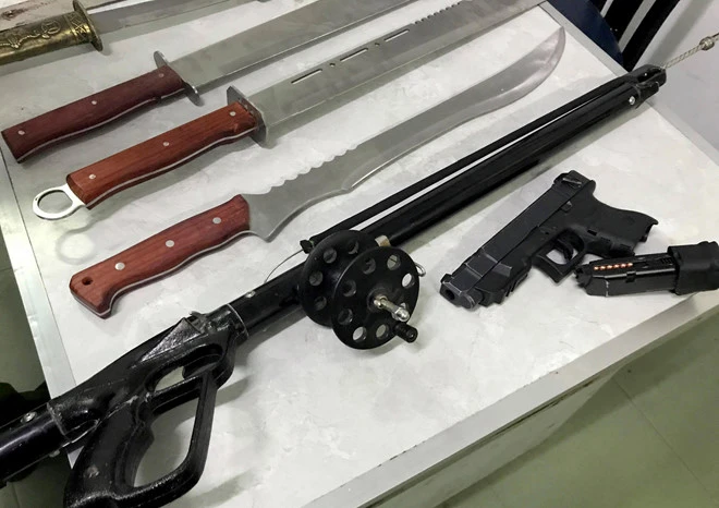 Tại hiện trường, công an thu giữ hàng chục hung khí các loại tại hiện trường.