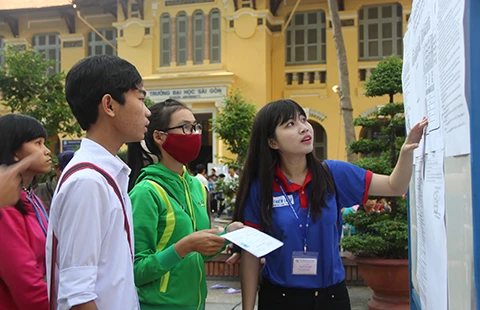 Thí sinh xem hướng dẫn coi kết quả thi và làm thủ tục xét tuyển. Ảnh: P.ANH