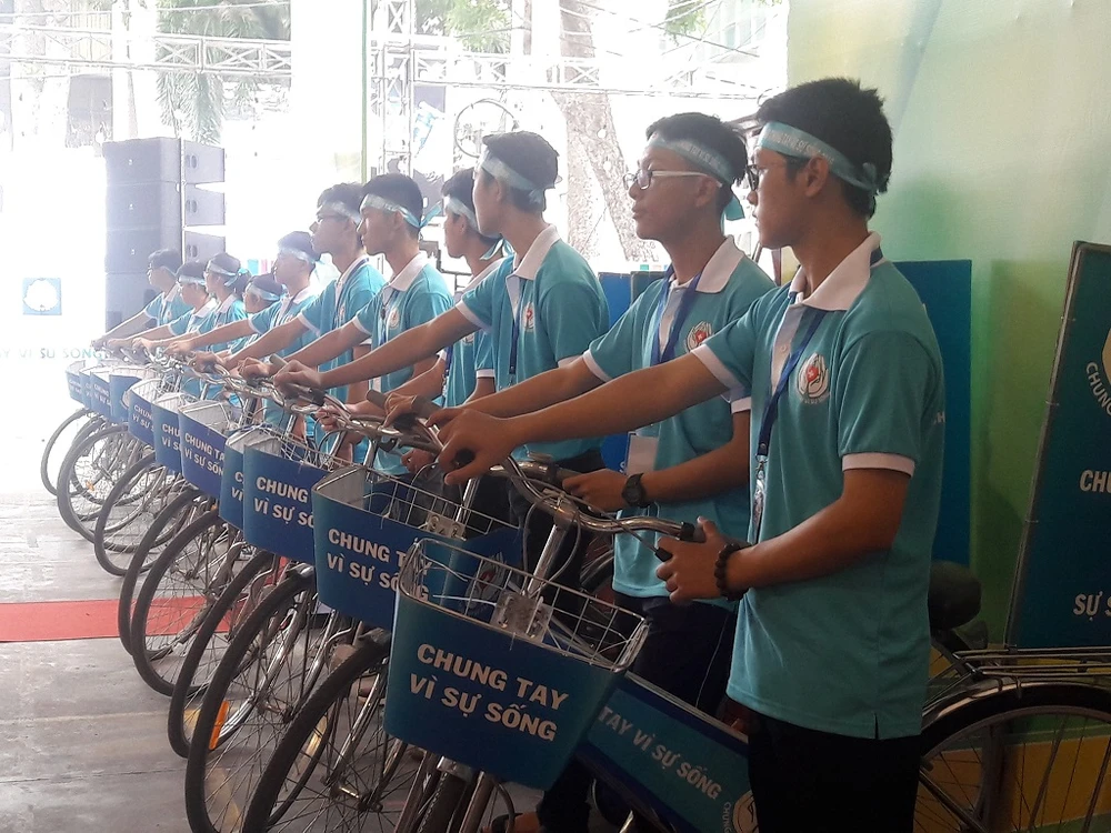 Đạp xe đồng hành cùng chương trình "Chung tay vì sự sống" ẢNH: HÀ PHƯỢNG